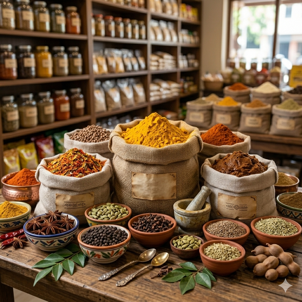 Fresh turmeric, biryani masala, tandoori marinades, chutney powders, and traditional Indian spices that enhance every meal.