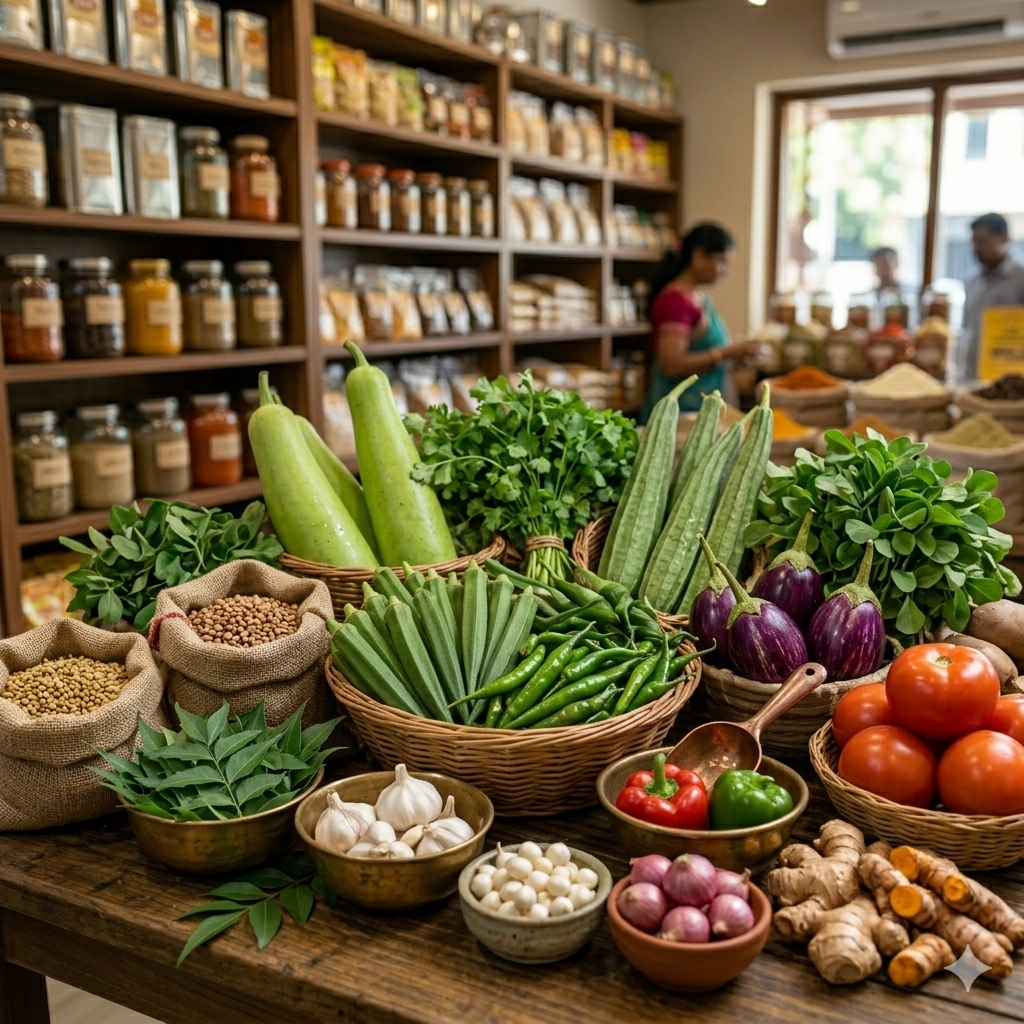 Daily fresh vegetables including bhindi and seasonal produce for healthy family meals.